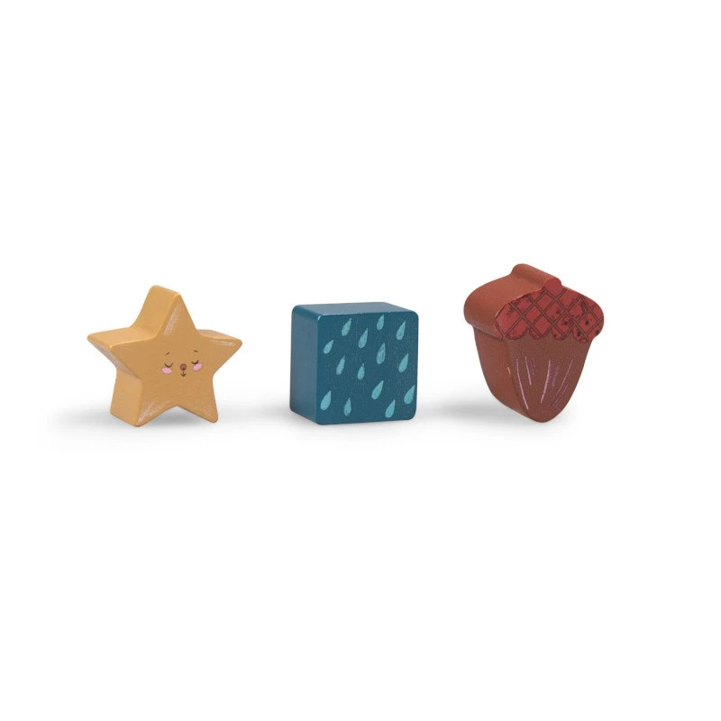 Le chariot multi-activités Après la pluie par Moulin Roty vous séduira grâce à ses jolies couleurs douces dans les tons de bois naturel, rose et bleu avec une multitude de détails multicolores !