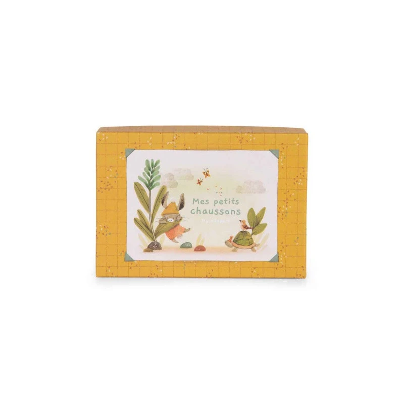 Livrés dans une superbe boîte illustrée, les chaussons Souris Trois Petits Lapins sont prêts à offrir pour fêter l’arrivée d’un nouveau-né, ou à se faire offrir sur votre liste de naissance !