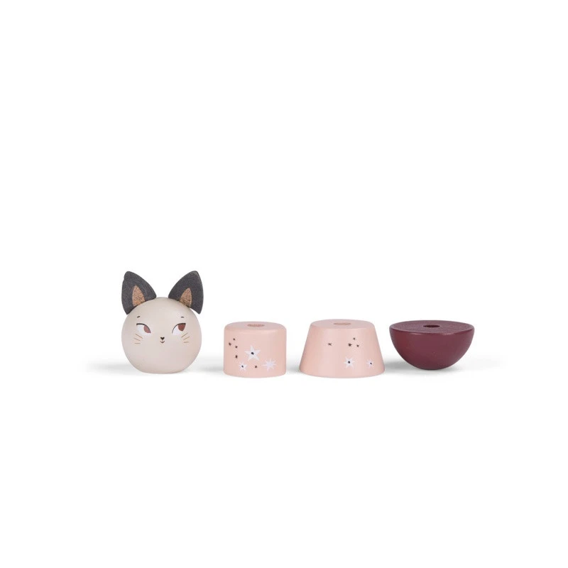 L’empilable multi-activités Après la pluie de Moulin Roty est une jolie revisite d’un classique des jouets en bois premier âge : empiler des pièces pour reconstituer des personnages.