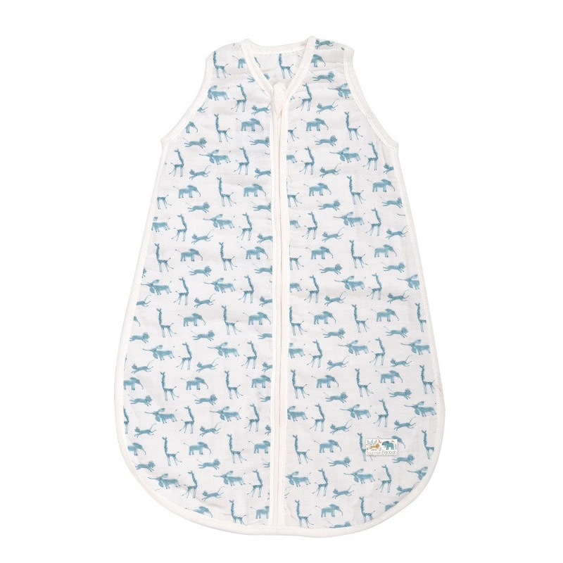 La gigoteuse naissance été animaux Sous mon baobab Moulin Roty est joliment imprimée d’animaux de la savane bleus sur fond blanc, spécialement dessinés à l’aquarelle pour cette collection. On y retrouve Paprika le lion, Bibiscus la girafe et Bergamote, l’éléphant, nos 3 compères inséparables de Sous mon baobab.