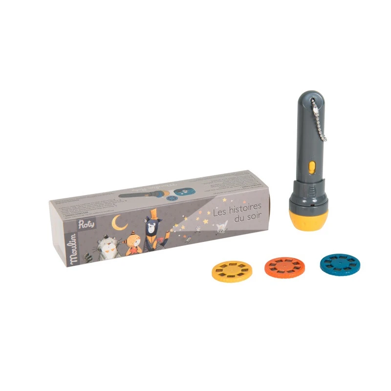 Chaque disque conte une histoire en couleurs. Facile à transporter, cette lampe pourra suivre votre enfant partout, et faire partie du rituel de son coucher. Ses illustrations colorées qui embarquent l’enfant pour un doux sommeil magique.