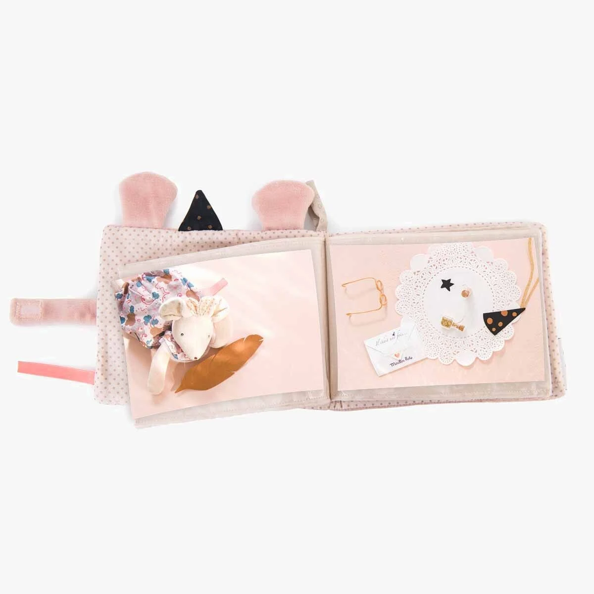 Album photo à la douce couverture en éponge velours, représentant la souris magicienne et sa baguette magique, prêter à exaucer tous les vœux. Peut être brodé au prénom de l’enfant. Idéal pour un cadeau naissance.