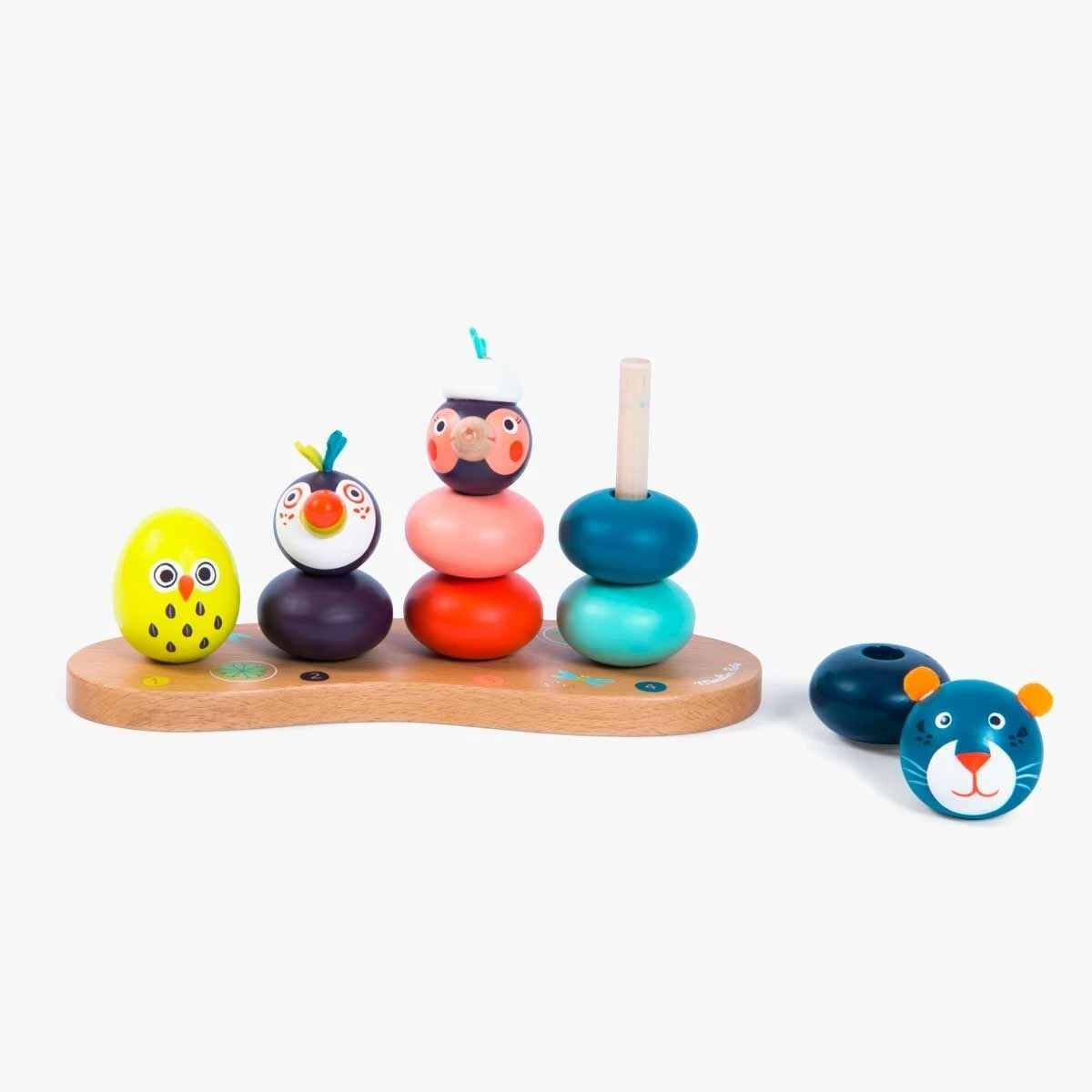 Empilable multi-activités pour développer la capacité de l’enfant à manipuler et compter. Sur un socle en bois, empilez les parties en bois coloré pour recomposer les animaux de la jungle : la panthère, l’oiseau, le toucan et l’œuf… ou mélangez-les !