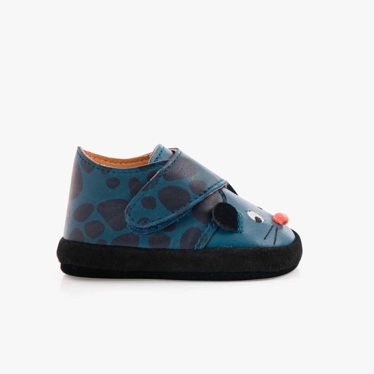 Chaussons en cuir avec fermeture à scratch, brodés d’une panthère rigolote et ses oreilles velours ! Ils sont doublés, souples, avec une semelle en cuir velours antidérapante et une semelle intérieure amovible avec mousse, pour le confort de bébé !
