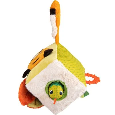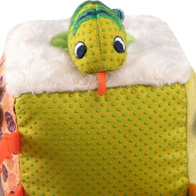 – Différentes activités, feuille qui crissent, étiquettes à attraper, anneau de dentition à mordiller, petit caméléon caché etc.