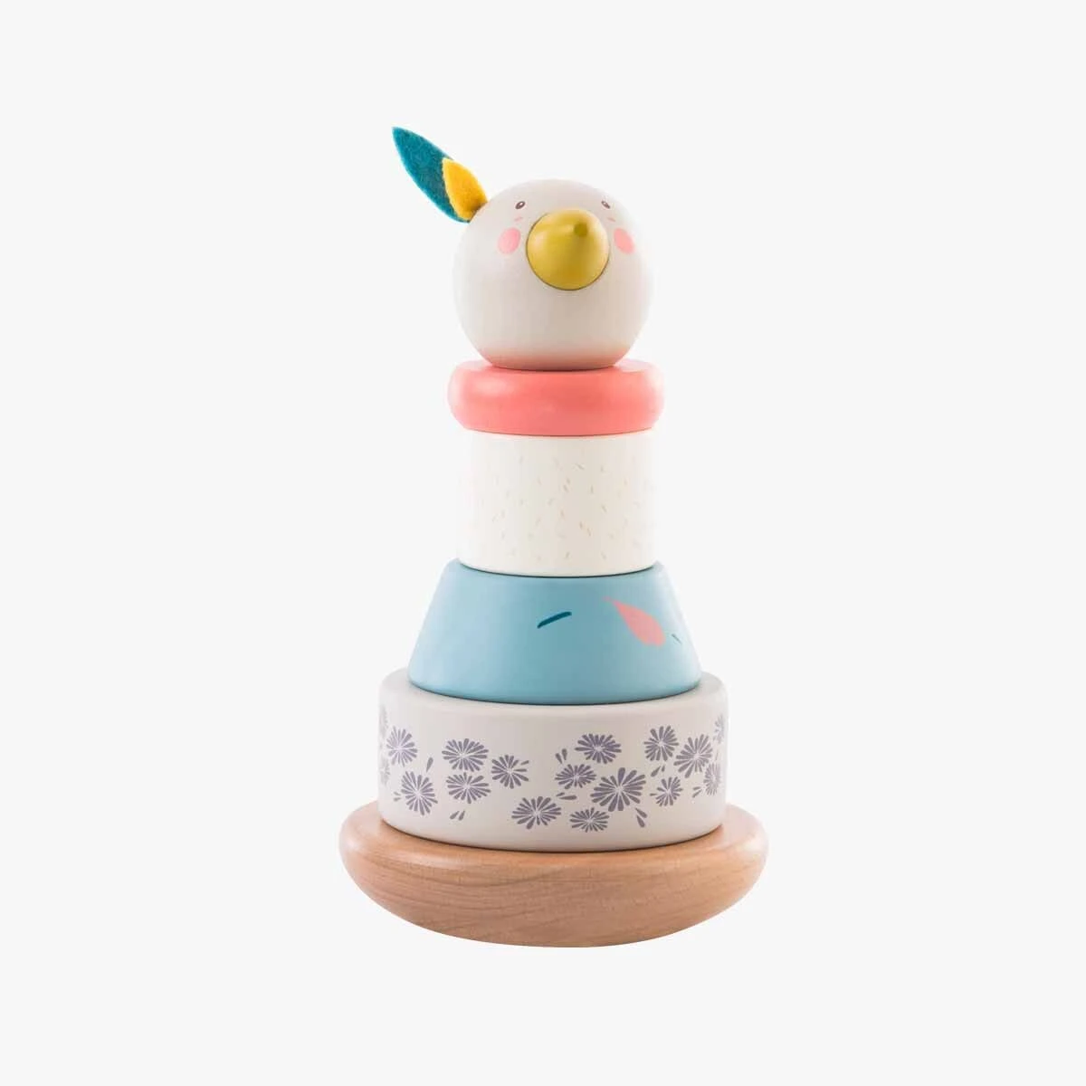 Pièces en bois empilables, peintes aux couleurs tendres et raffinées de la gamme, illustrées de motifs poétiques, pour former l’oie Olga. Idéal pour développer la motricité des tout petits.