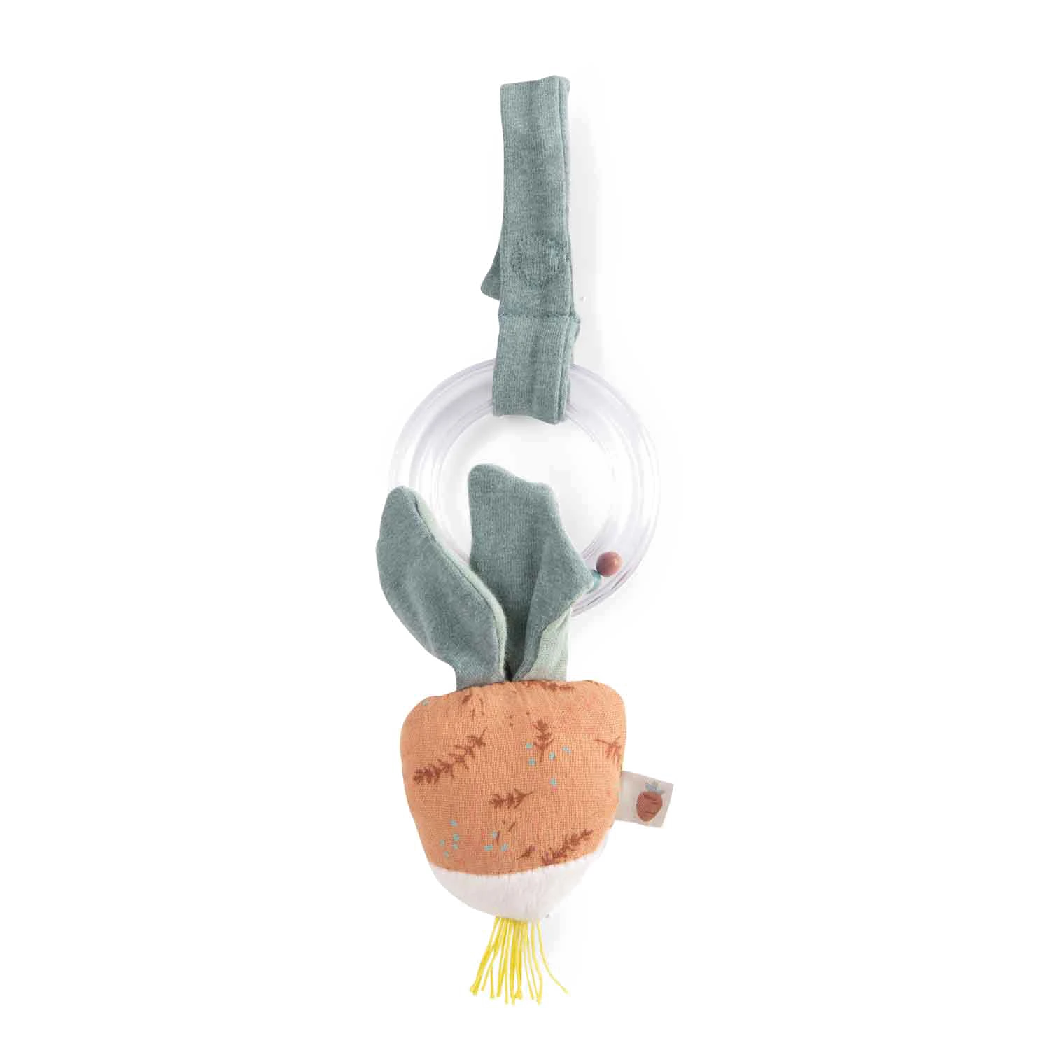 Hochet-anneau avec 8 billes colorĂ©es, facile Ă manipuler. Ce hochet en forme de radis dispose de nombreuses activitĂ©s d’Ă©veil pour occuper bĂ©bĂ©: pouĂ«t, scritch, dilling… Peut ĂŞtre suspendu partout grâce Ă son attache velcro.