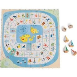 Le jeu de l’oie de l’explorateur Le Jardin du Moulin de la marque Moulin Roty est un jeu de l’oie spécial explorateur où l’on croise de drôles de poissons et de dangereux tourbillons… Hissez les voiles, le premier arrivé sur l’île gagne le trésor !