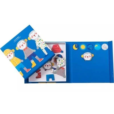 – Magnets représentant différents vêtements et accessoires à poser sur les 3 planches magnétiques.
