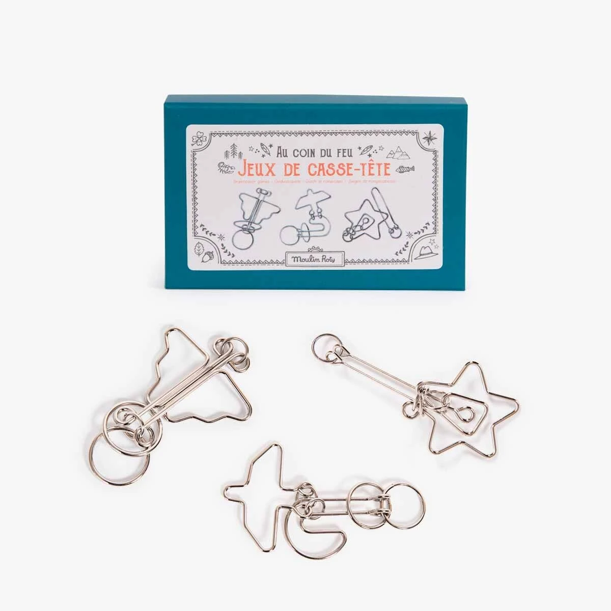 Les petits jeux parfaits pour la veillée au coin du feu : 3 casse-têtes en métal, aux jolies formes d’étoile ou d’oiseau, avec différents niveaux de difficulté pour faire travailler ses méninges ! Solutions fournies à l’intérieur.