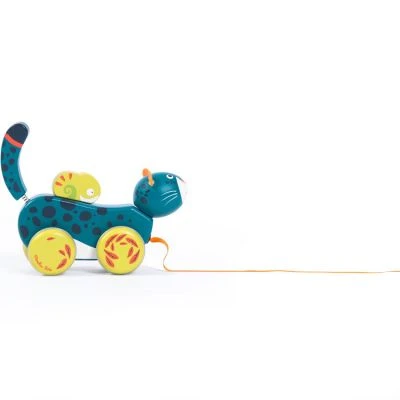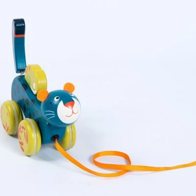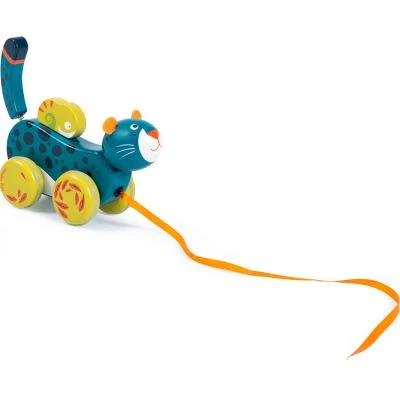 Le jouet à tirer Zimba la panthère Dans la Jungle de la marque Moulin Roty est adorable. Votre enfant pourra l’emmener partout ! La panthère repose sur des roues désaxées reproduisant le mouvement de ses foulées, et sa queue tenue par un ressort, se met à bouger ! L’enfant jouera aussi avec son ami caméléon tenu par un élastique.