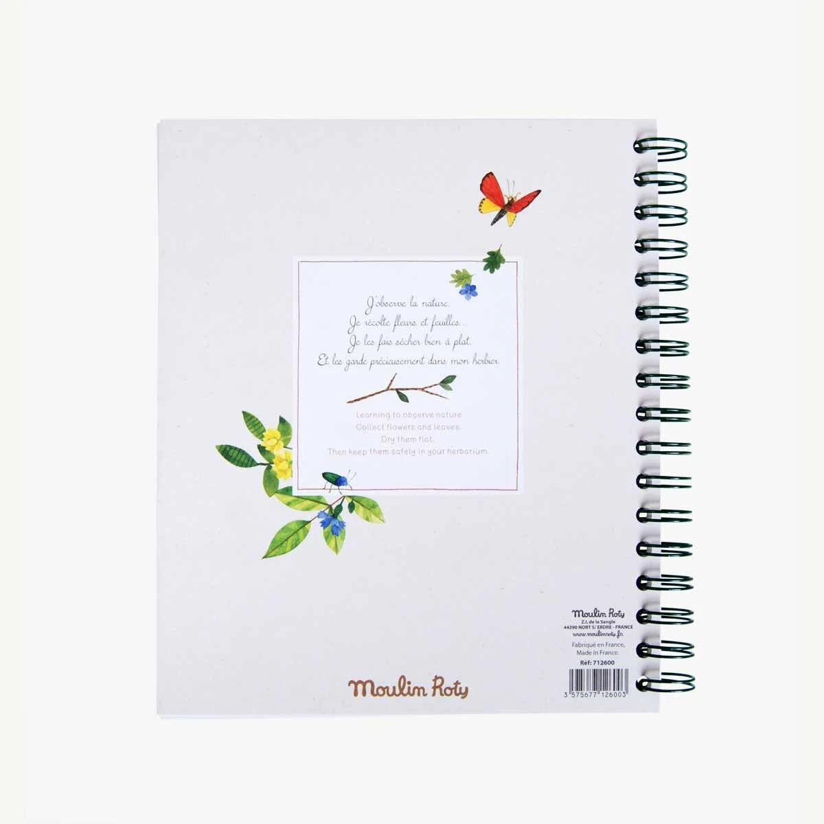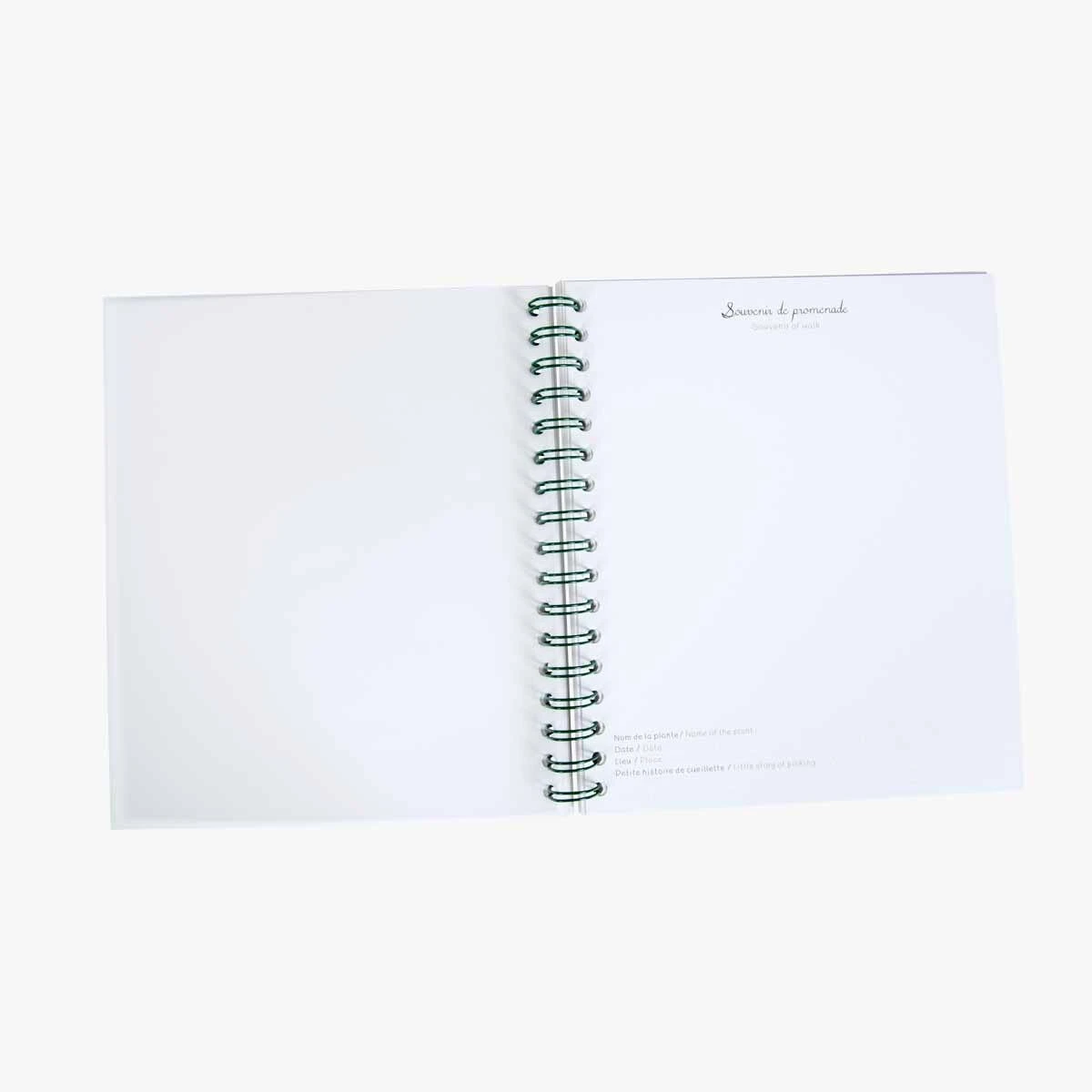 Cahier à spirales pour dessiner les plantes, et garder précieusement les feuilles du jardin et les fleurs cueillies pendant la promenade. Note le nom de la plante, le lieu, la date et la petite histoire de cueillette pour en garder un souvenir…
