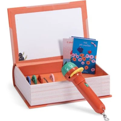 – Contient une lampe à histoires, 5 disques sur l’univers des comptines et 5 cartes pour chantonner.