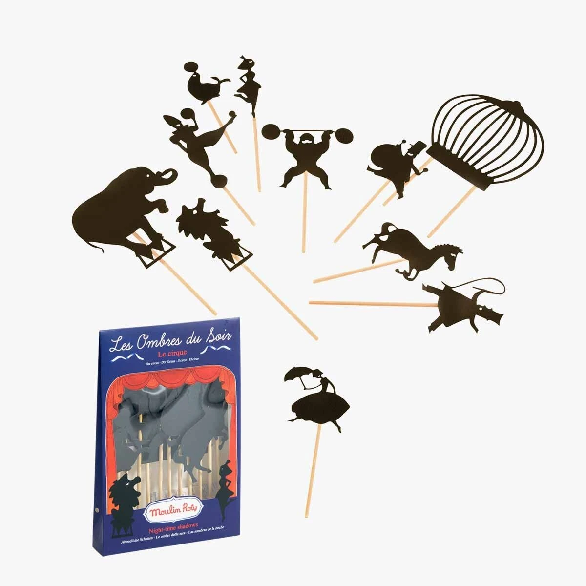 Ombre découpées sur le thème du cirque, à animer et projeter sur le mur, ou derrière un écran de spectacle, pour inventer de belles histoires quand vient le soir… Elles développeront l’imaginaire des enfants et seront sans cesse réinventées !