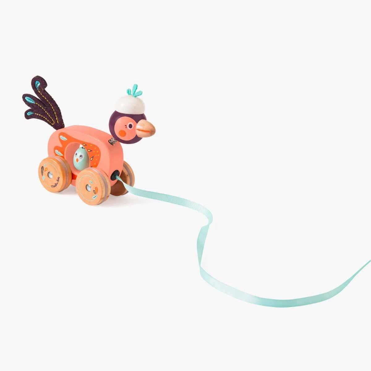 Petit oiseau à tirer en bois coloré à l’image de la gamme, à emmener partout avec soi. Ses ailes et sa tête, fixée sur ressort, s’agitent quand l’oiseau avance ! Jouet à tirer par un ruban. Développe la motricité de l’enfant.