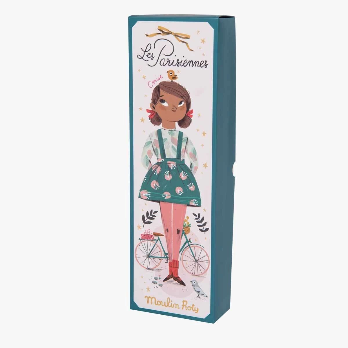 Pétillante poupée Cerise ! Magicienne de l’élégance avec sa blouse à motifs, jupe plissée à bretelles et nœuds pour les cheveux, elle rayonne de couleurs. Elle se présente dans un coffret cadeau, illustré par la créatrice Lucille Michieli.