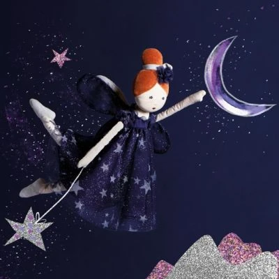 – Robe ornée de tulle pailleté avec étoiles et petites ailes de fée.