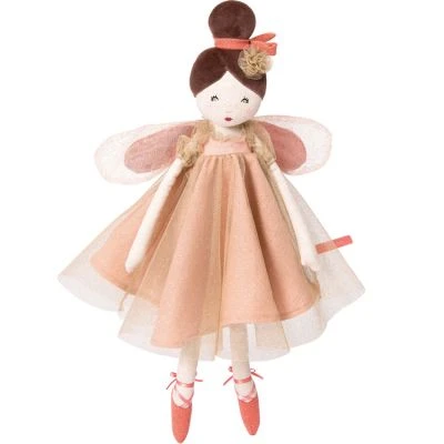 – Poupée vêtue d’une robe de coton et d’un voile de tulle pailleté.