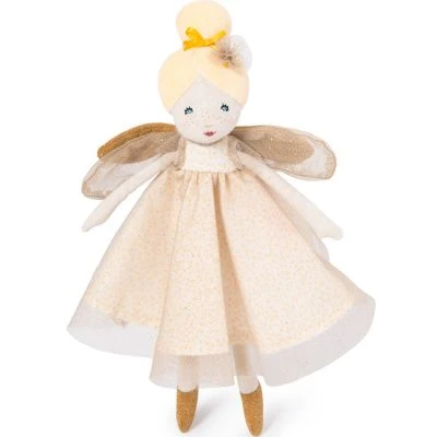 – Robe à pois rose avec tulle pailleté et ailes de fée dans le dos.