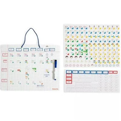 – 21 magnets vierges à compléter avec le crayon effaçable.