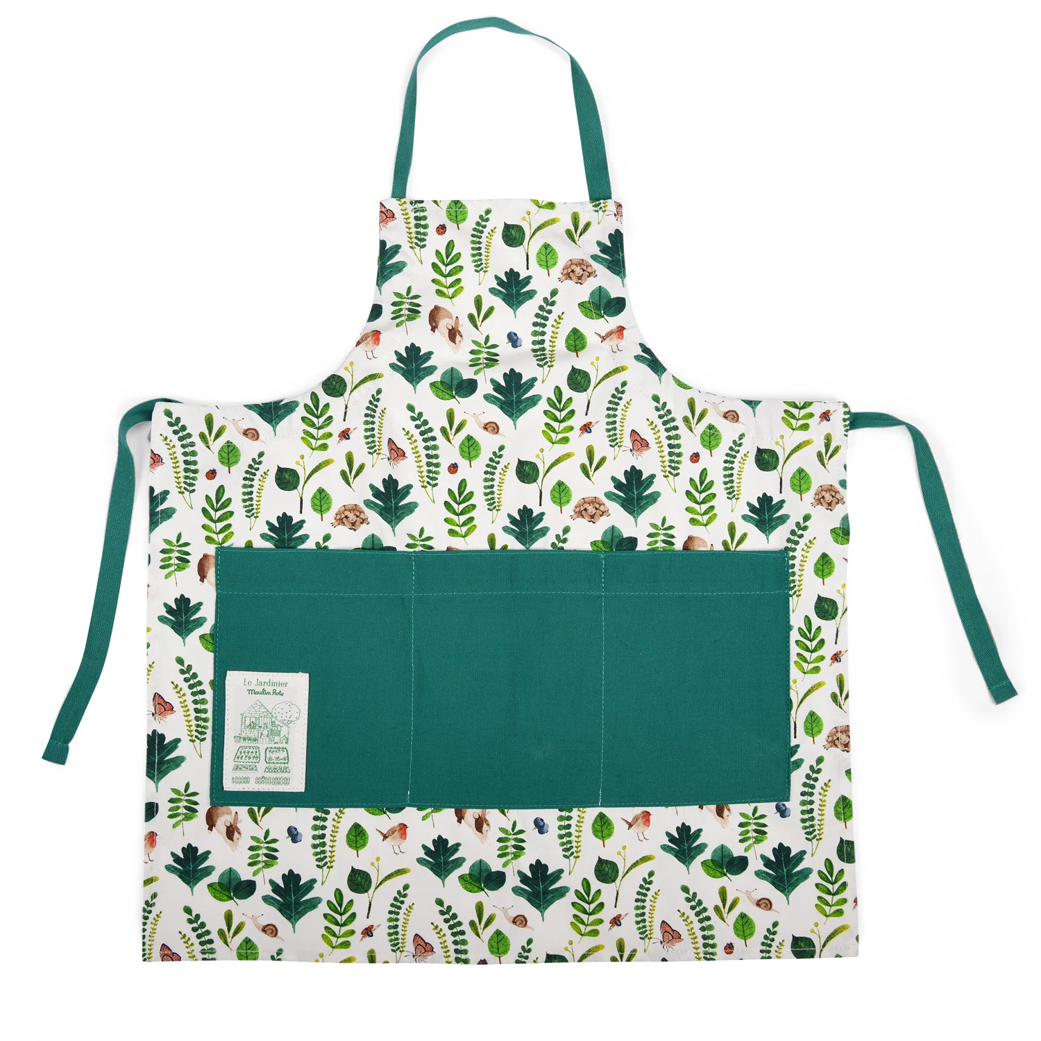 Ce joli tablier en toile lavable, illustré sur le thème du jardin, permet aux enfants de jardiner sans se salir. Il dispose d’une grande poche centrale compartimentée en 3 qui permet d’avoir toujours à portée de main, graines OU gants.
