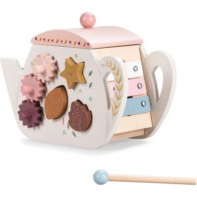 – Différentes activités, boulier, formes à encastrer, roues dentées à faire tourner, xylophone etc.