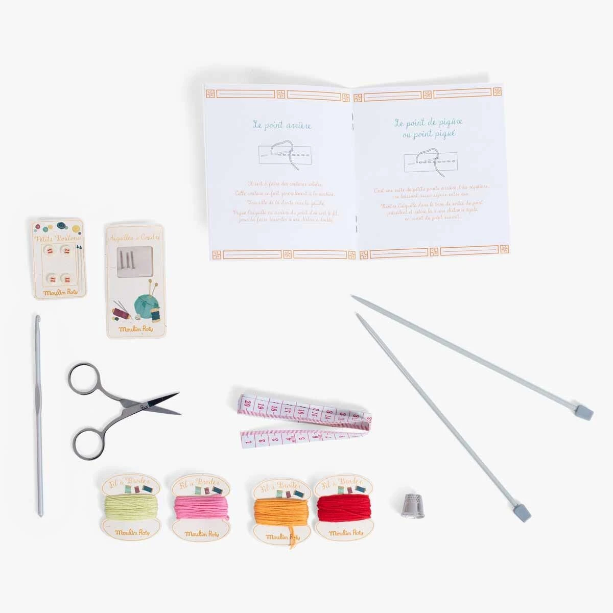Tout l’univers de l’atelier couture contenu dans une valise !Pour faire comme les grands : des aiguilles à tricoter et des pelotes, du fil et des aiguilles, un mètre ruban, un dé à coudre, des petits boutons, une paire de ciseaux et un manuel explicatif.