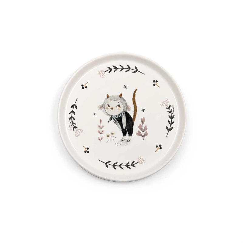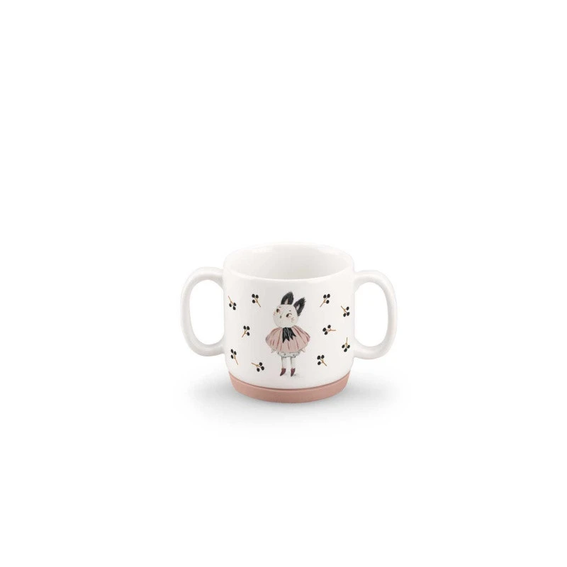 L’ensemble de vaisselle proposé par Moulin Roty comprend un bol, une tasse facile à attraper par ses anses et une assiette plate. Chaque élément est réalisé en porcelaine, décoré par de délicats motifs fleuris et par les tendres personnages de la collection Après la pluie. De plus, une « chaussette » en silicone, amovible et anti-dérapante est prévue pour éviter de tout renverser !