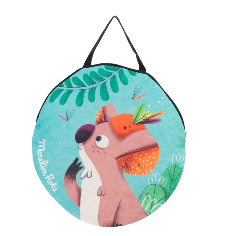 La tente de jeu Dans la jungle de Moulin Roty se plie et se déplie en un instant ! Elle est spacieuse une fois déployée, et super compacte quand elle est rangée dans son sac de transport illustré. Elle passe ainsi aisément de la chambre au jardin, ou partout ailleurs où votre bout de chou se déplace. Elle dispose en outre d’une porte et d’une fenêtre, avec rideaux, qui laissent votre enfant retrouver un peu de sa tranquillité.
